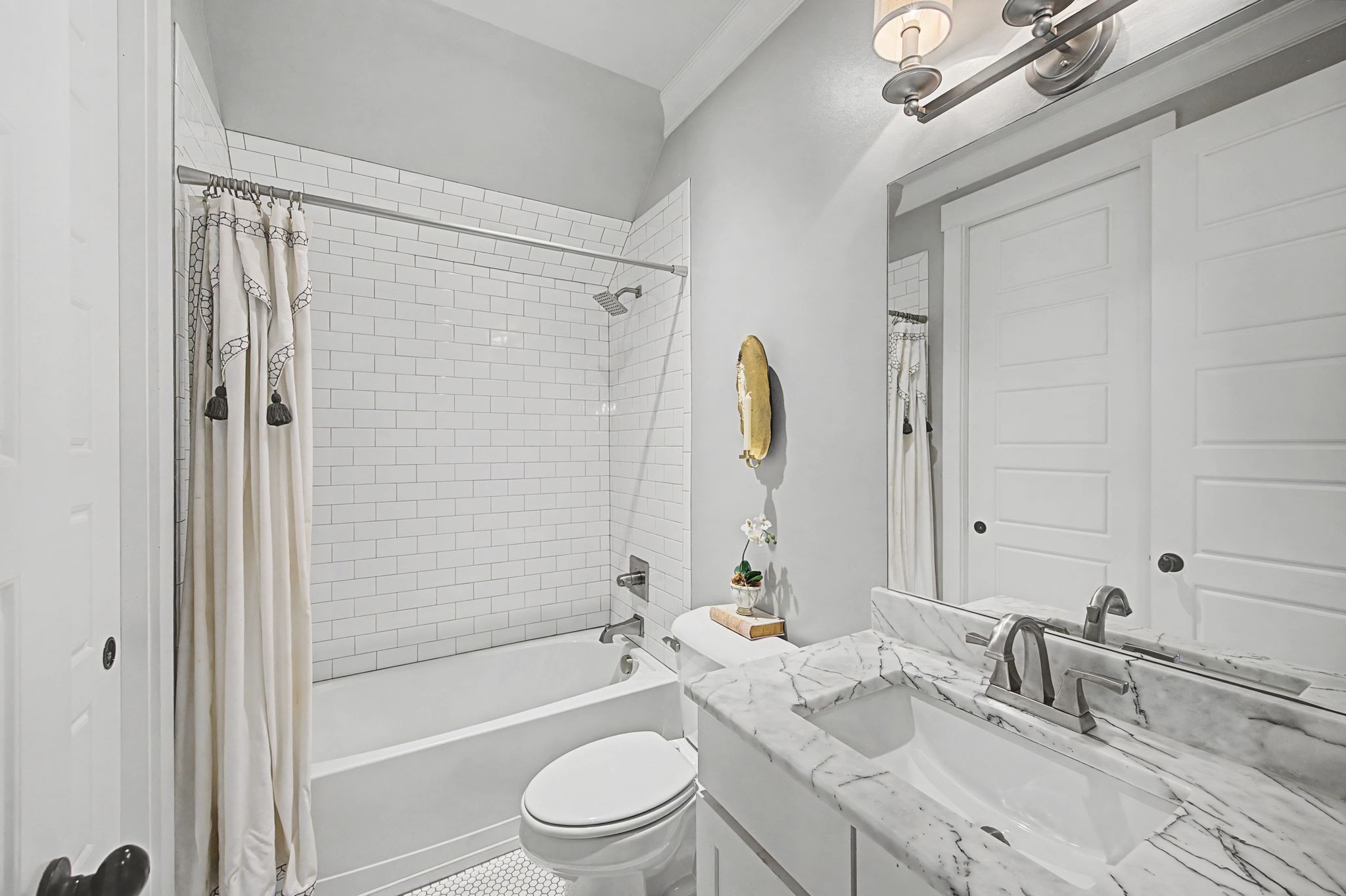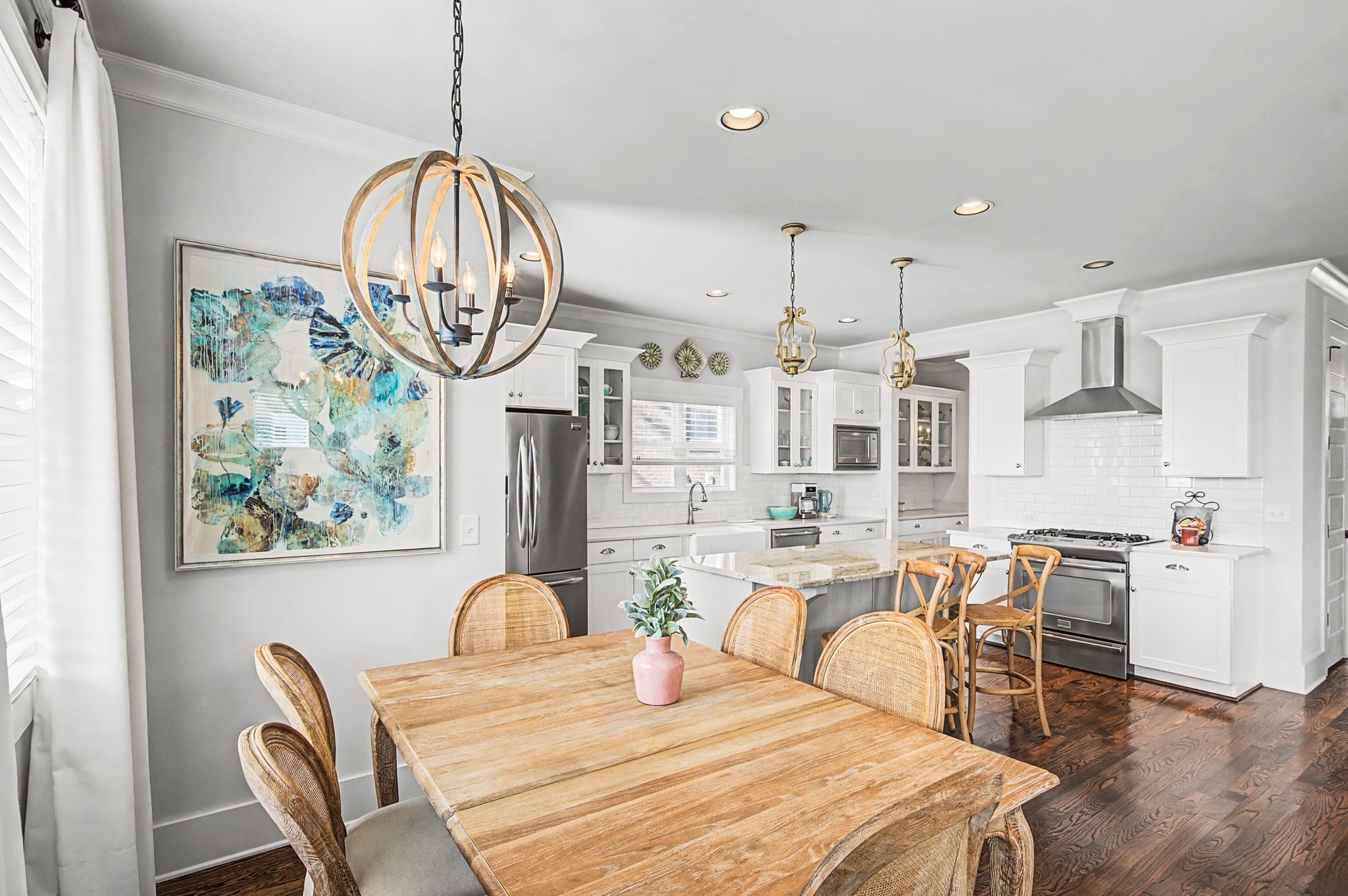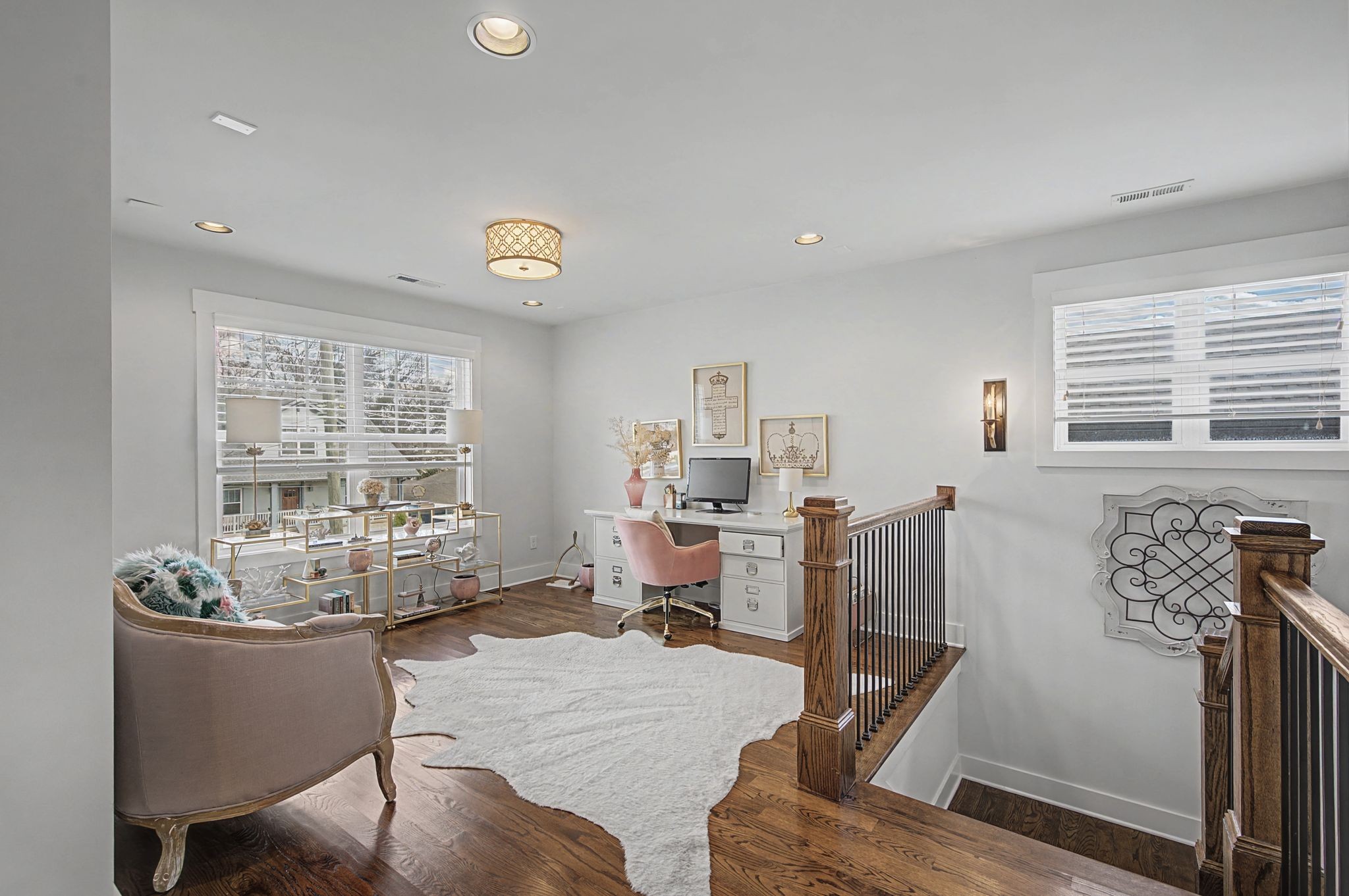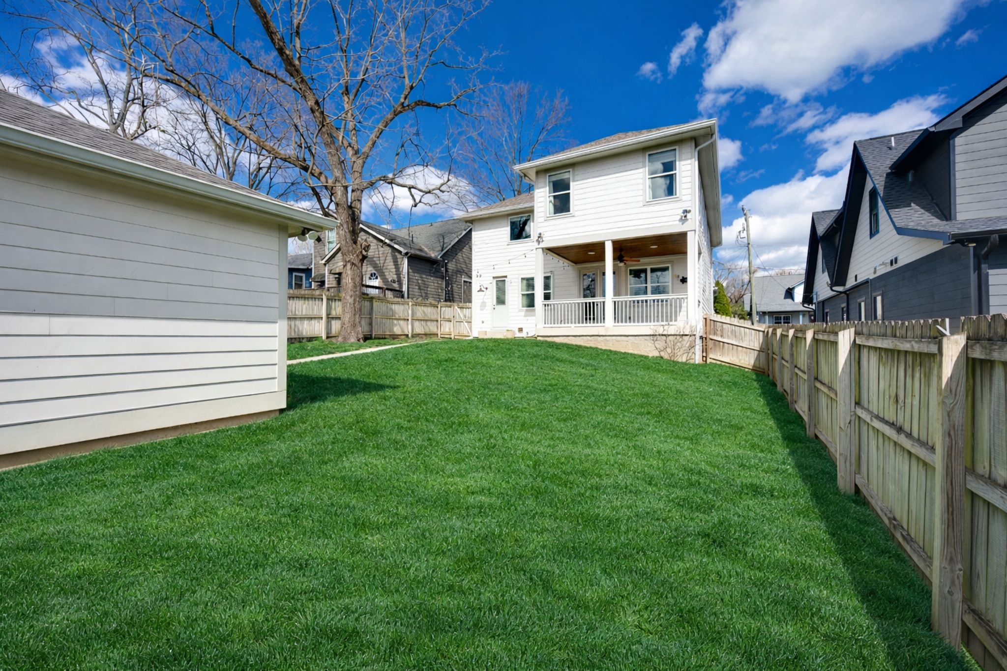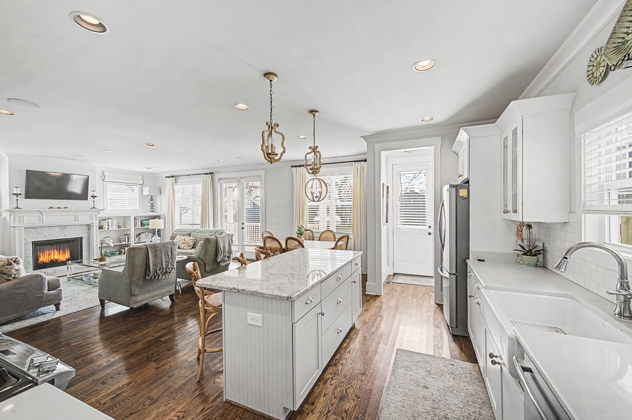 Exceptional FULLY FURNISHED executive residence located in the heart of Nashville’s coveted 12 SOUTH district. This impeccably maintained 4-bedroom, 3-bath home offers refined comfort and thoughtful design throughout. The interior showcases rich hardwood floors, soaring ceilings, custom built-in bookcases, and a warm gas fireplace that anchors the inviting living space. The open-concept kitchen is designed for both functionality and entertaining, featuring a gas cooktop, expansive counter space, and a bright eat-in dining area. The private upstairs primary suite serves as a true retreat, complete with double closets and a spacious sitting room. An upstairs office nook provides an ideal work-from-home setting, while the additional bedrooms and full baths offer flexibility for guests or family. Washer and dryer remain for tenant convenience. Outdoor living is equally impressive with a welcoming covered front porch and a rear covered patio overlooking the fully fenced backyard. A detached two-car garage completes the property. Ideally positioned just moments from the vibrant dining, boutiques, parks, and lifestyle amenities of 12 South, this turnkey furnished home presents an exceptional opportunity for executive relocation or luxury rental living in one of Nashville’s most desirable neighborhoods.